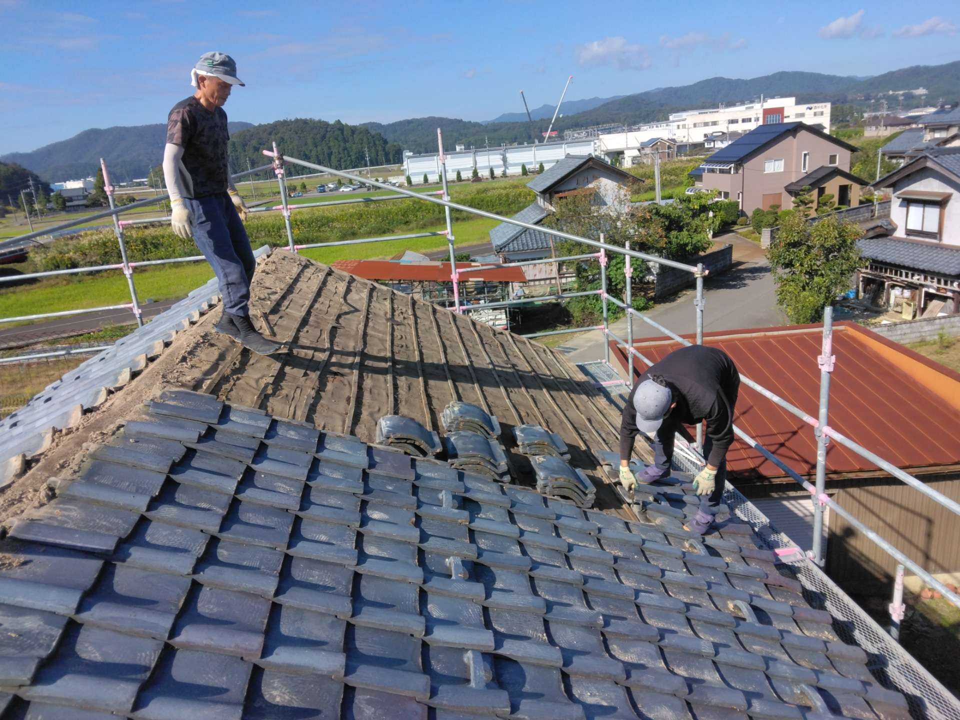 今日は鯖江市で瓦屋根の葺き替え工事に来ています。
